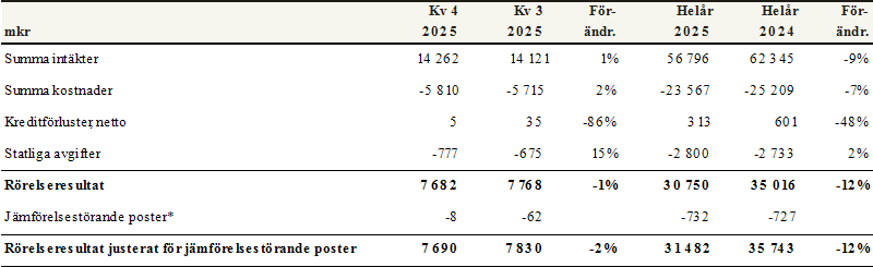 - Rörelseresultatet uppgick till 7 682 mkr (7 768)