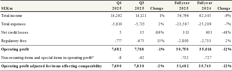 The Annual and Sustainability Report for 2025 will be published in the week beginning 23 February and will be available from handelsbanken.se/ir.