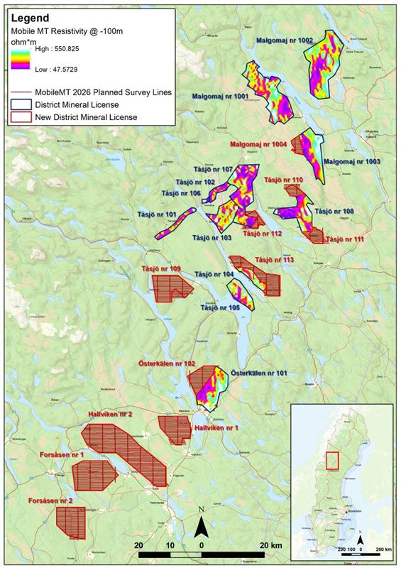 The MobileMT survey will comprise approximately 2,253 line kilometers at 400 meter line spacing and 4,000 m spaced tie lines over recent mineral license applications (see December 17, 2025 news release) that have now all been approved by the Mining Inspectorate, and are part of the Alum Shale Properties (Figure 1).