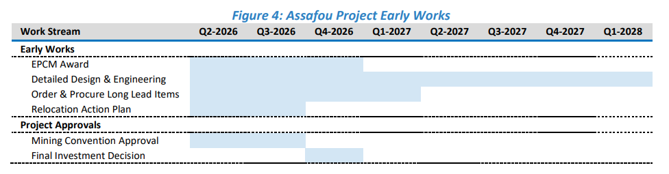For FY-2026 exploration at Assafou will advance with a $10 million guided spend focused on testing and progressing several potential satellite targets within 10 kilometres of the Assafou deposit, including the Pala Trend Southwest and Koumenagaré targets, in addition to resource definition at the Pala Trend 2 target.