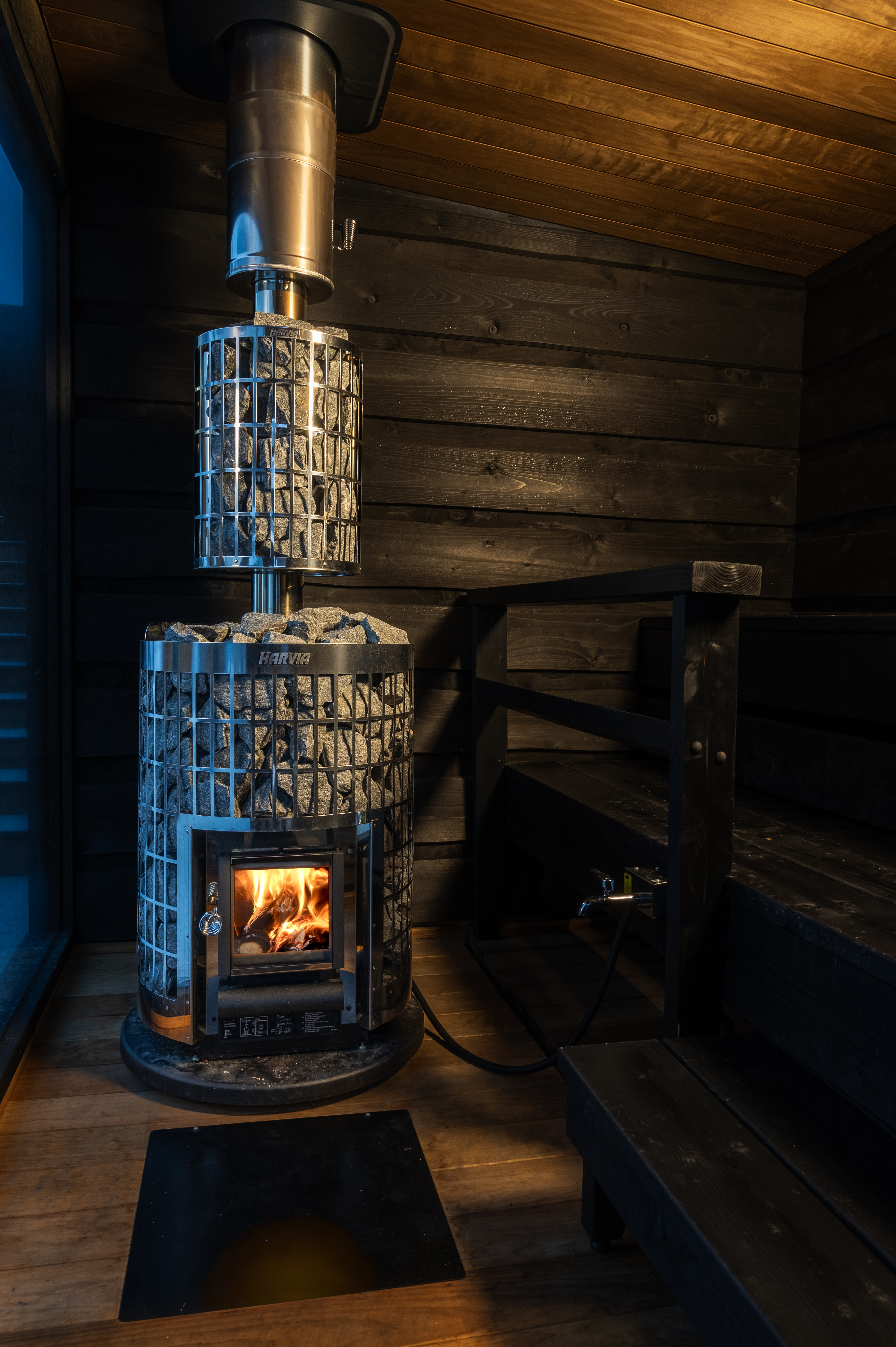 - Discover the Harvia Cilindro wood-burning heater here.